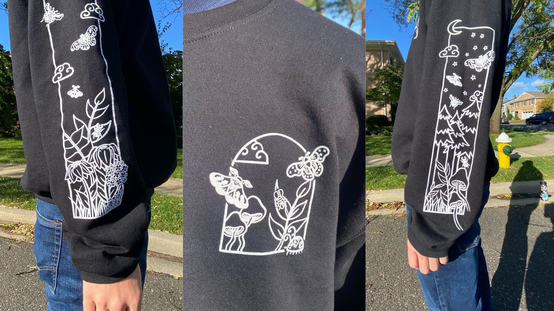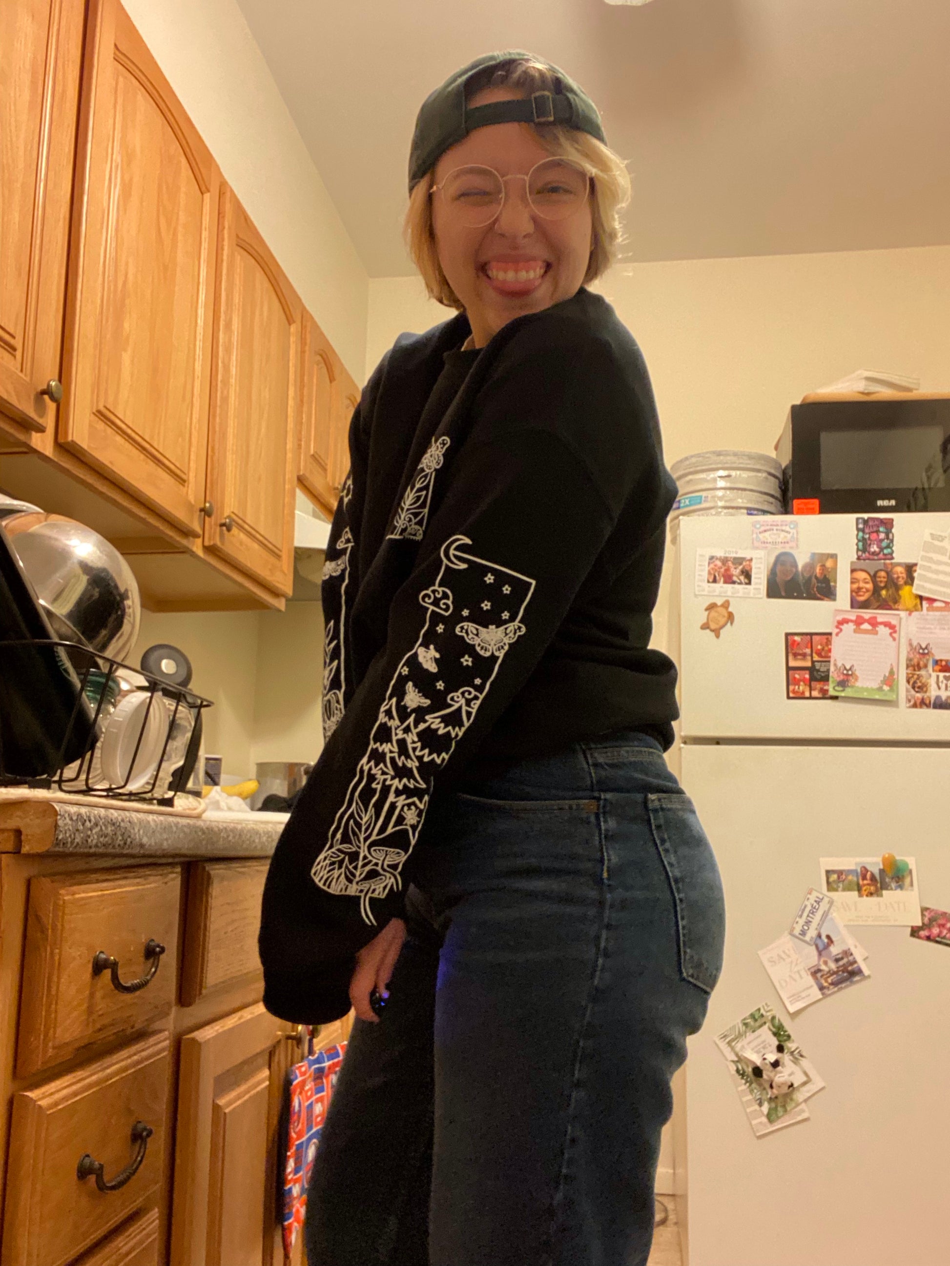 The buggy babies have made it to their very own sweatshirt! This is a Gildan Heavy Blend Crewneck Sweatshirt (50% polyester, 50% cotton blend) available featuring full sleeve details and a left chest print. All artwork has been screen printed in white.