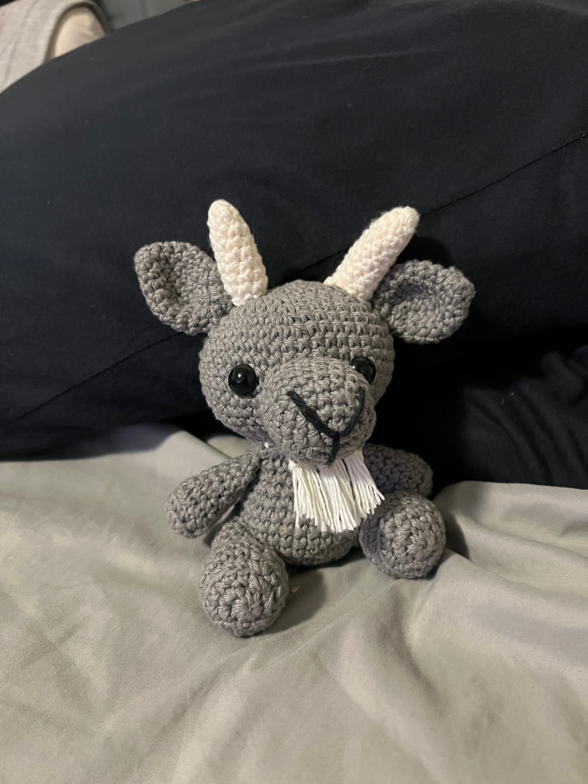 This is the Pre-Order for one adorable little goat amigurumi plush toy! Bear sits about 5 inches tall and is gently stuffed full of incredibly soft poly fill. Goat is a great buddy, as they enjoy eating popcorn of any variety, and really any snack, testing mattresses at eh mall, and fixing your printer's worst paper jams. Goat is currently available in one of 5 colors, as seen in the last photo: