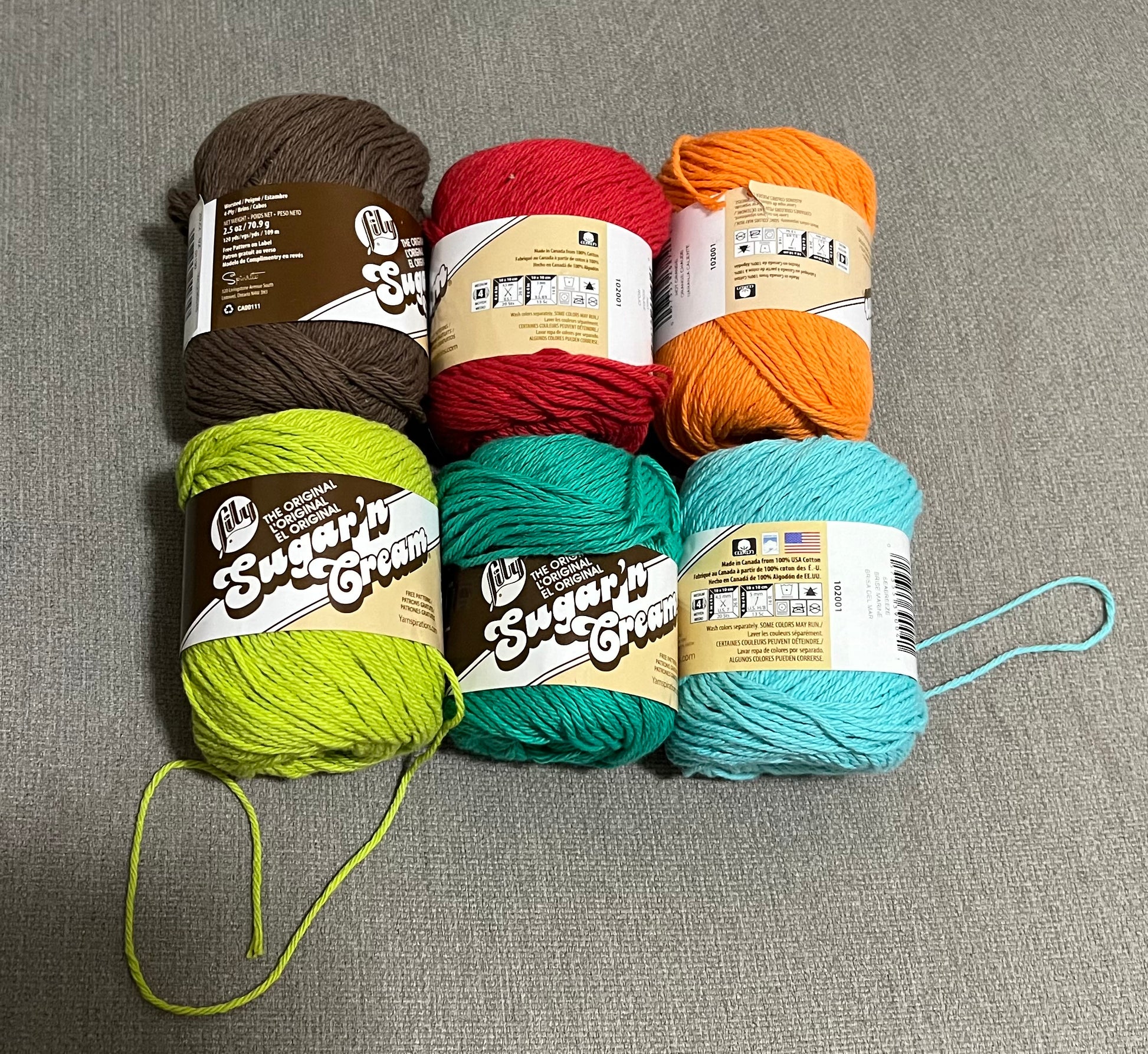 Brown, Red, Orange, Lime Green, Deep Turquoise, and Light Teal