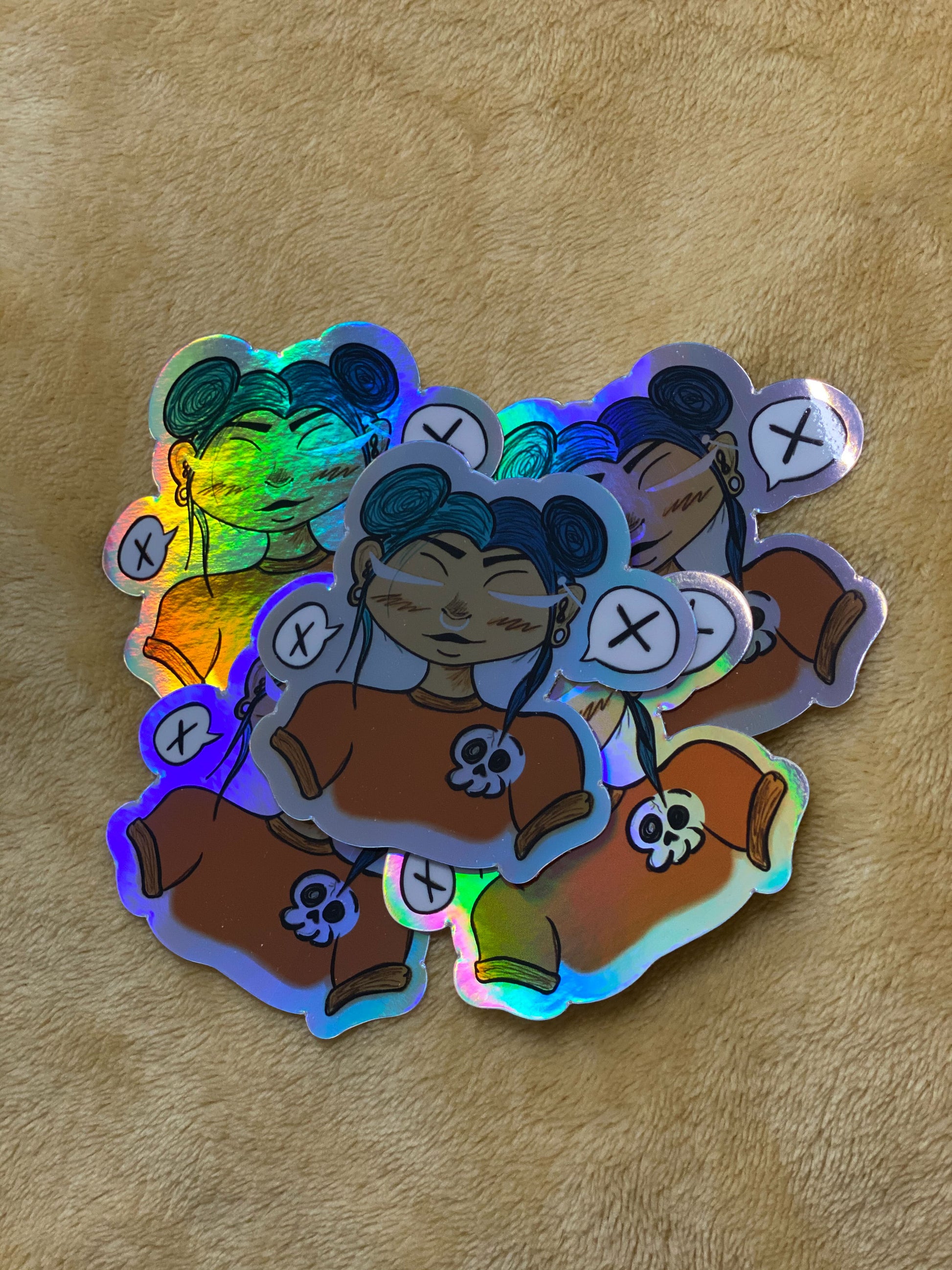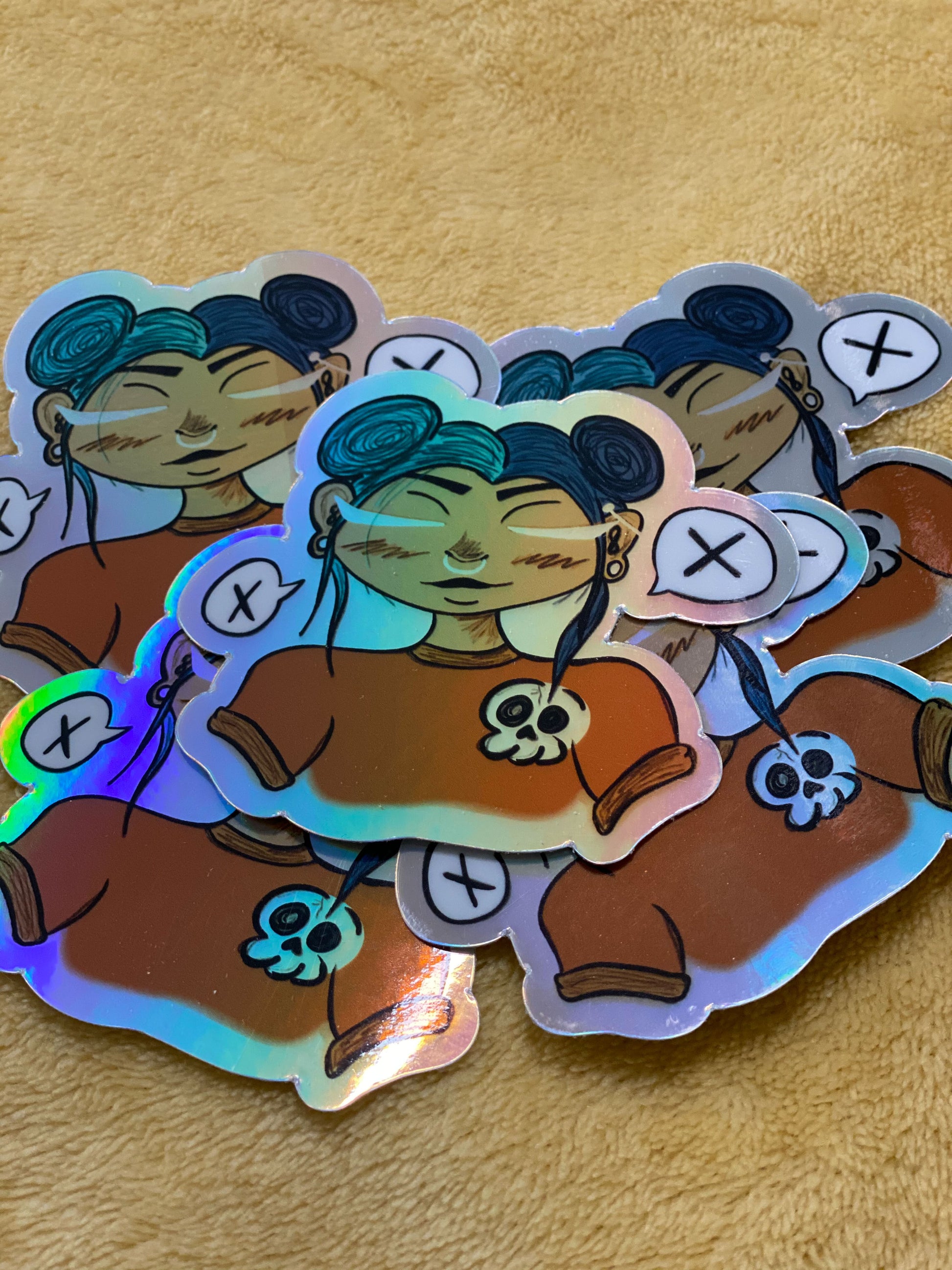 This babe is inspired by a close friend, a total badass. She radiates confidence and takes no shit. She's also currently raising an adorable little puppy. If these vibes sound like what you need in your life, this is the sticker for you. This badass babe was also featured in the postcard design!