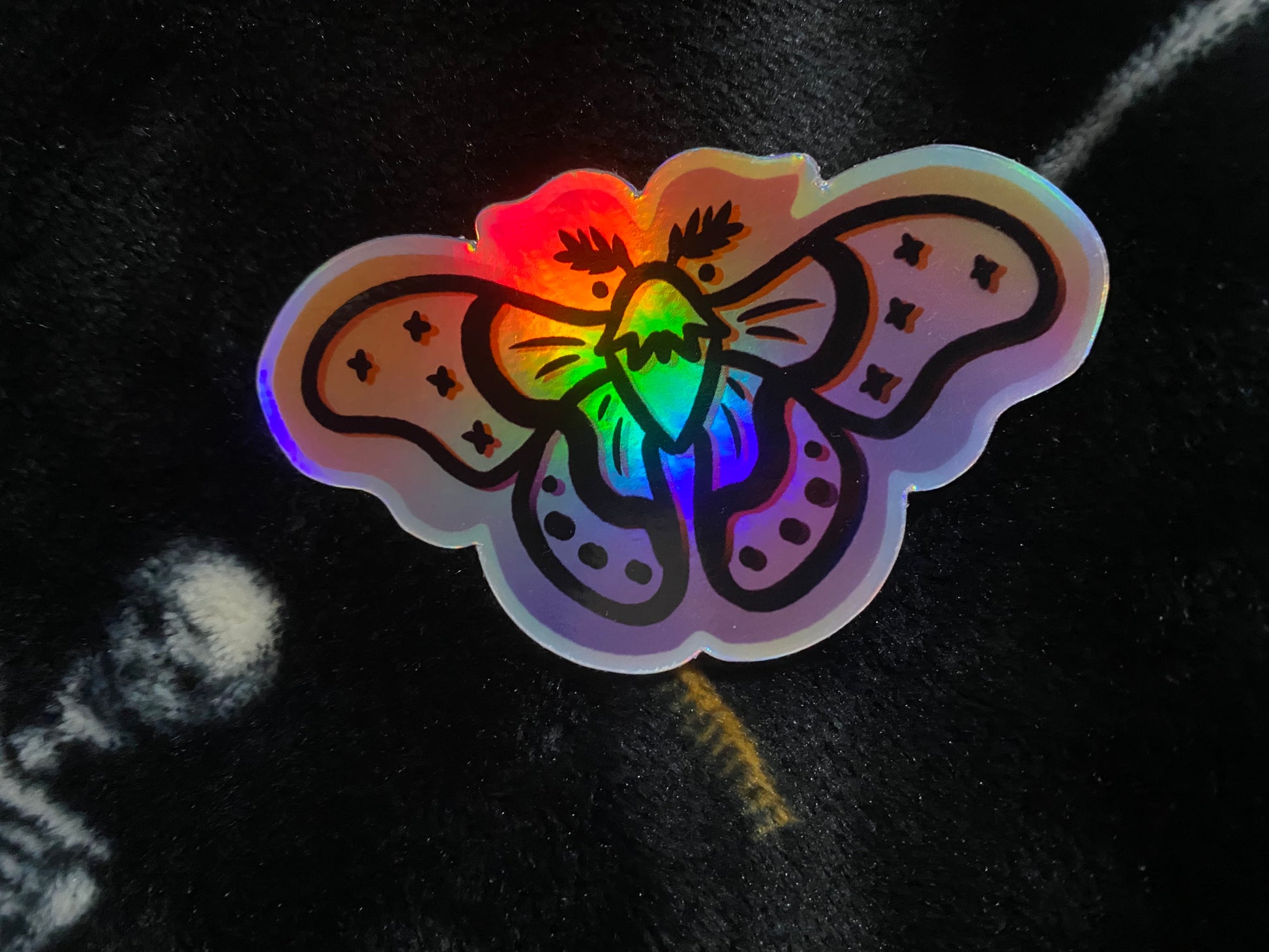 The new 2021 Witch Moth with a little extra holographic sheen. Sweet and cute and fluffy and rainbow, an excellent pal for whatever you need <3